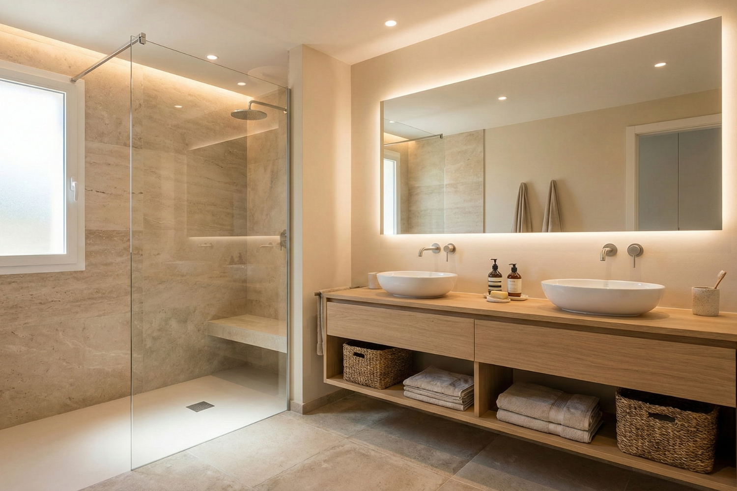Hi ha cuines que funcionen molt bé com a espais col·laboratius, oberts i multifuncionals. D’altres necessiten ordre, calma i separació. El mateix passa amb els banys: alguns guanyen amplitud amb solucions minimalistes, d’altres amb textures, colors o jocs de llum ben pensats.